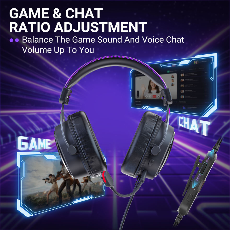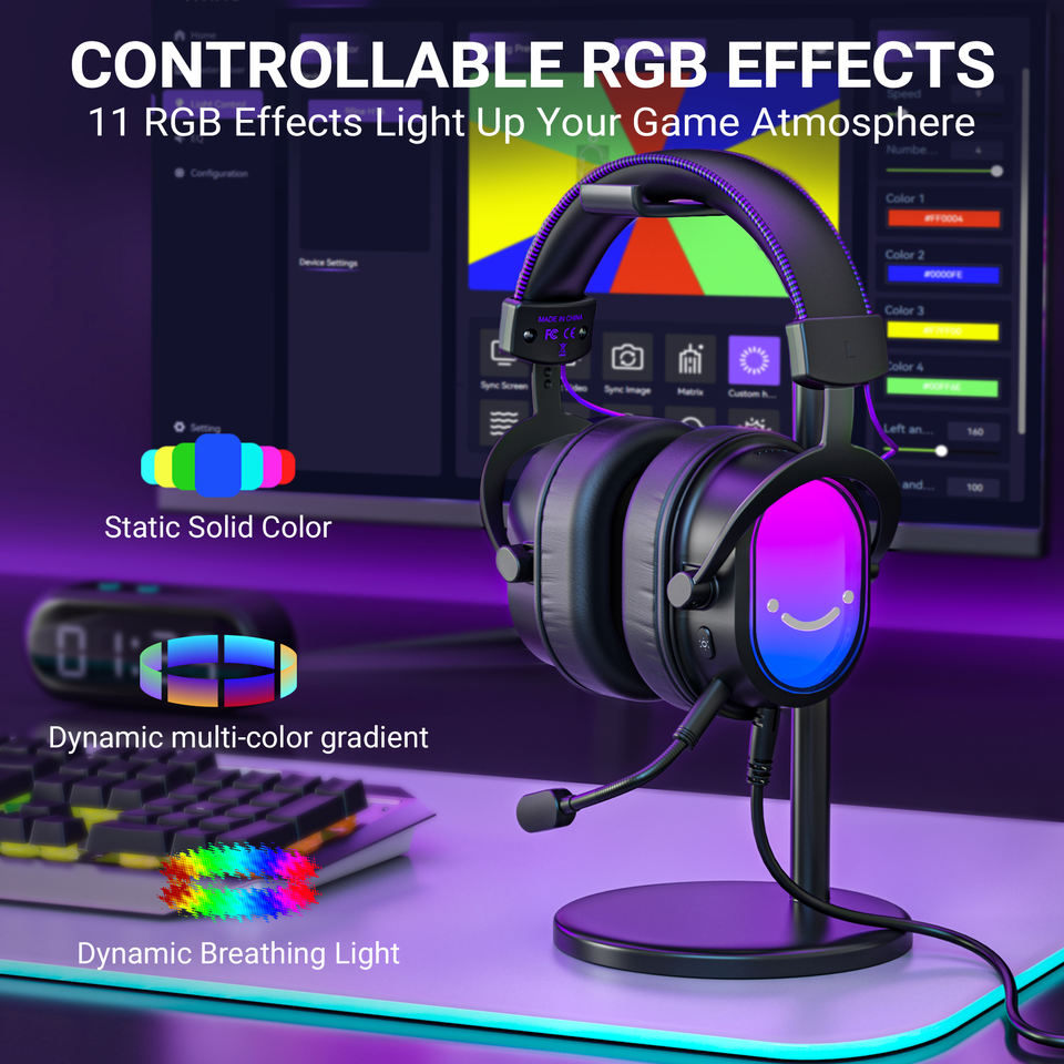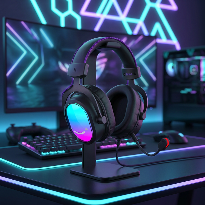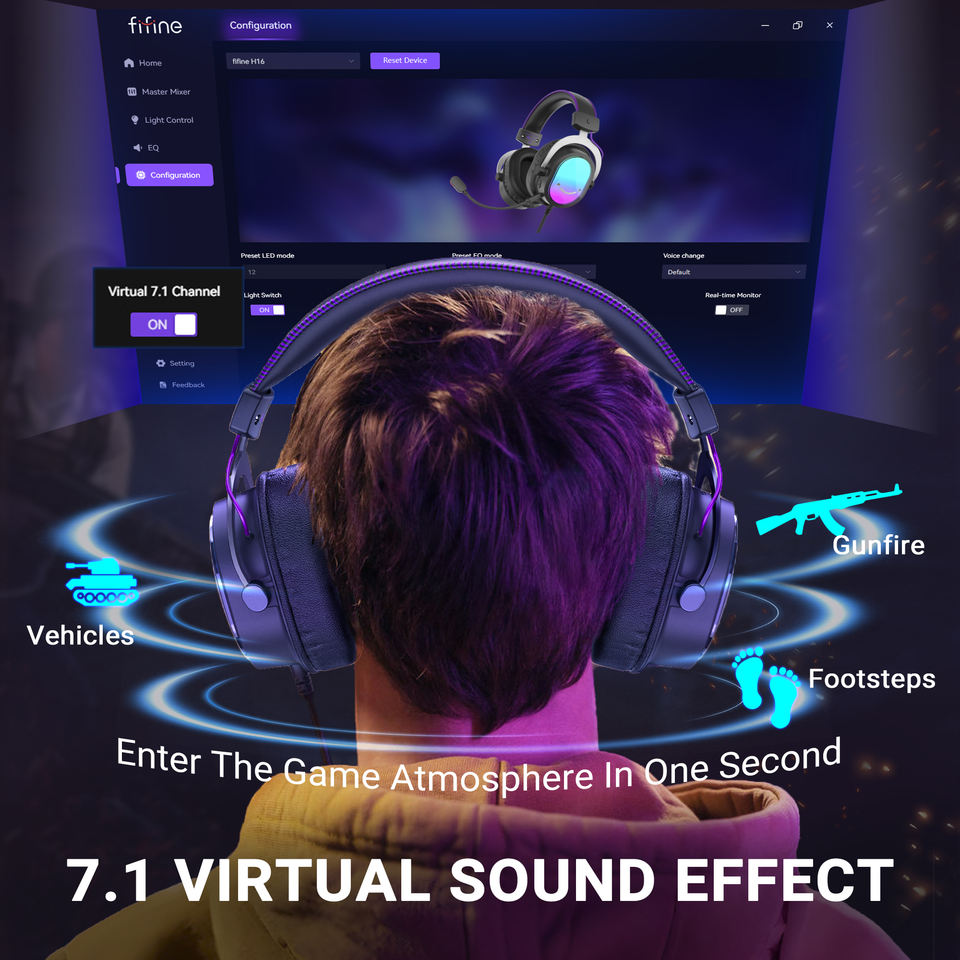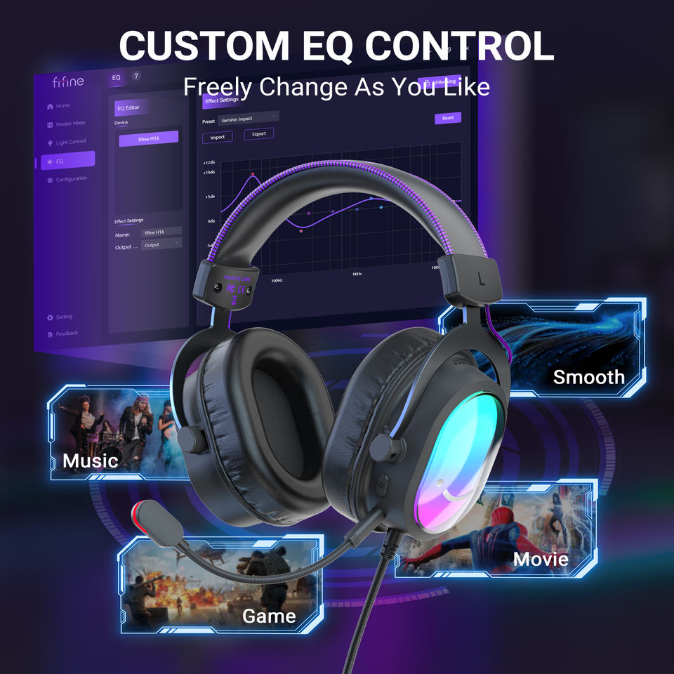 Casque de jeu FIFINE H16, son surround virtuel 7.1, casque supra-auriculaire pour joueurs avec éclairage RVB, casque avec micro ANC