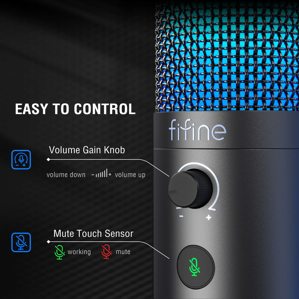 Microphone à condensateur FIFINE T669 PRO, microphone professionnel pour YouTube, microphone d'enregistrement en studio, microphone de jeu RGB