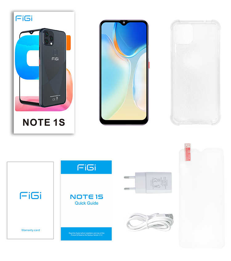 Smartphone Android FIGI NOTE 1S 128 Go 4G Octa-core 4500 mAh Téléphone portable UE Triple caméra 13 MP Écran HD+ 6,6 pouces Lecteur d'empreintes digitales Fabricant