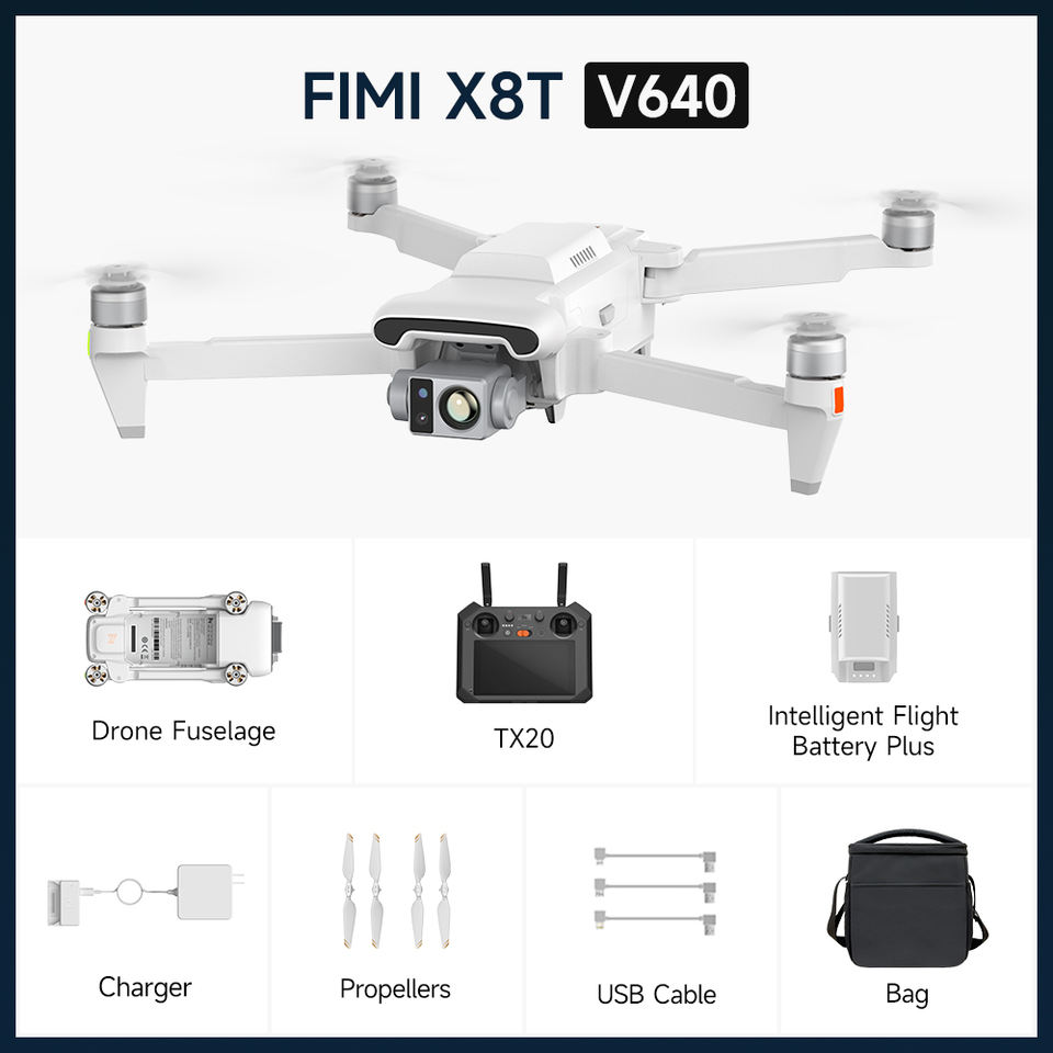 FIMI X8T X8 Dron UAV à portée de 20km avec caméra infrarouge thermique Quadcopter professionnel 4K Mini Dron grand angle et UAV hybride 30x