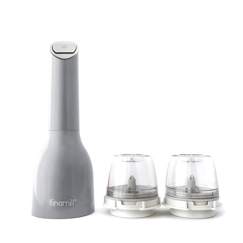 FINAMILL - Moulin à épices électrique avec deux dosettes PRO PLUS, gris pierre