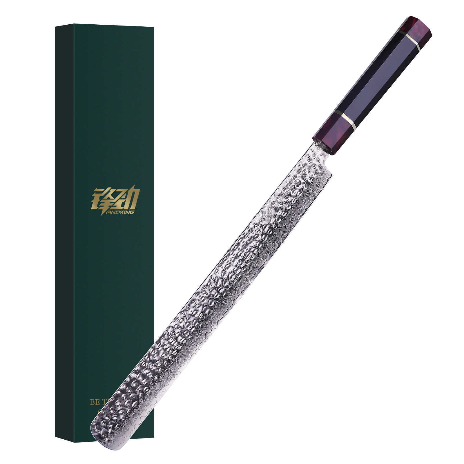 Couteaux de cuisine professionnels FINDKING Eternity Series, 12 pouces, en acier Damas, pour découper la viande et le jambon, avec manche en résine