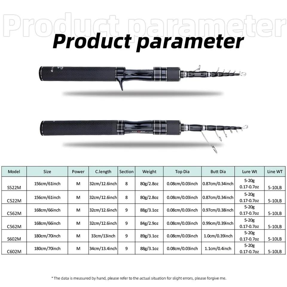 Canne à pêche télescopique en carbone FISHINGFANS Mini shrink 33cm, section courte portable, puissance moyenne, canne à pêche M