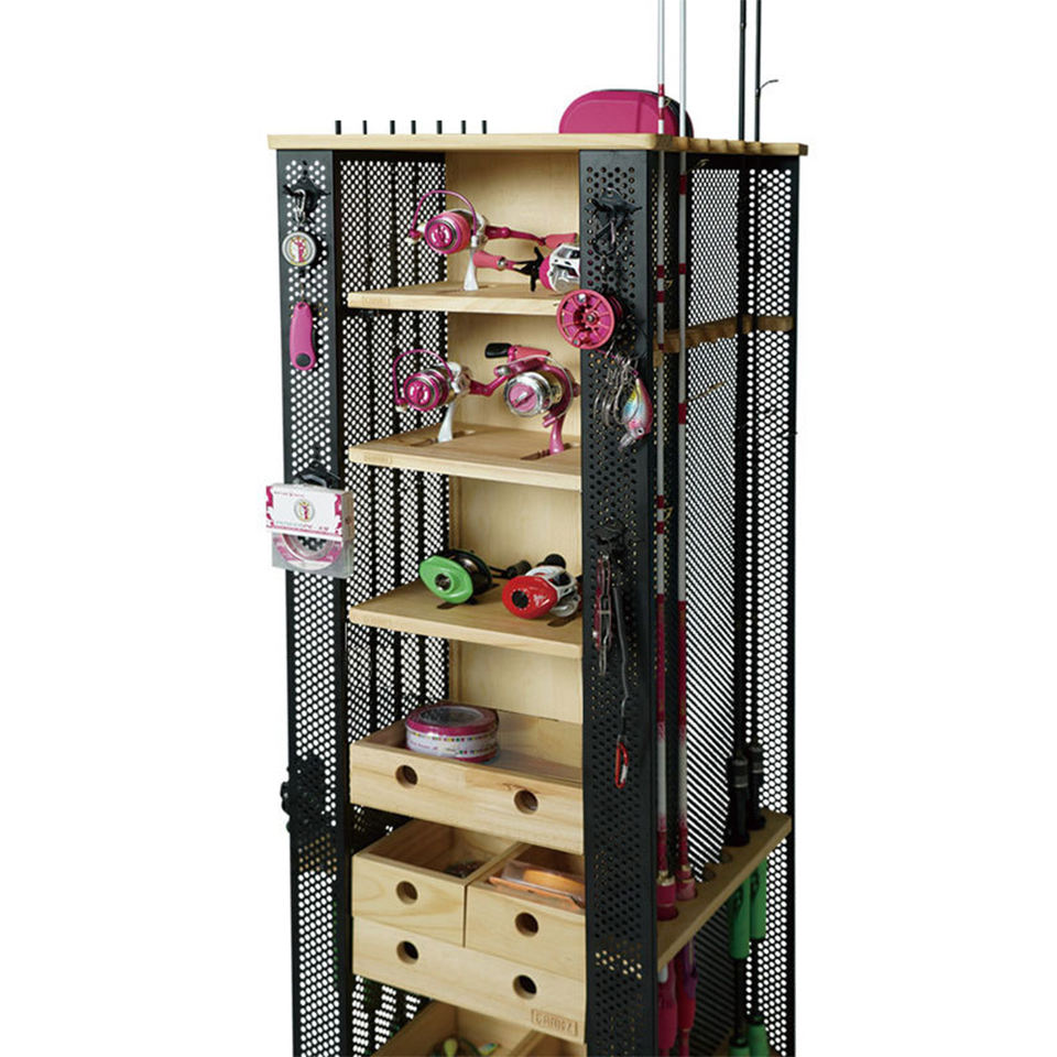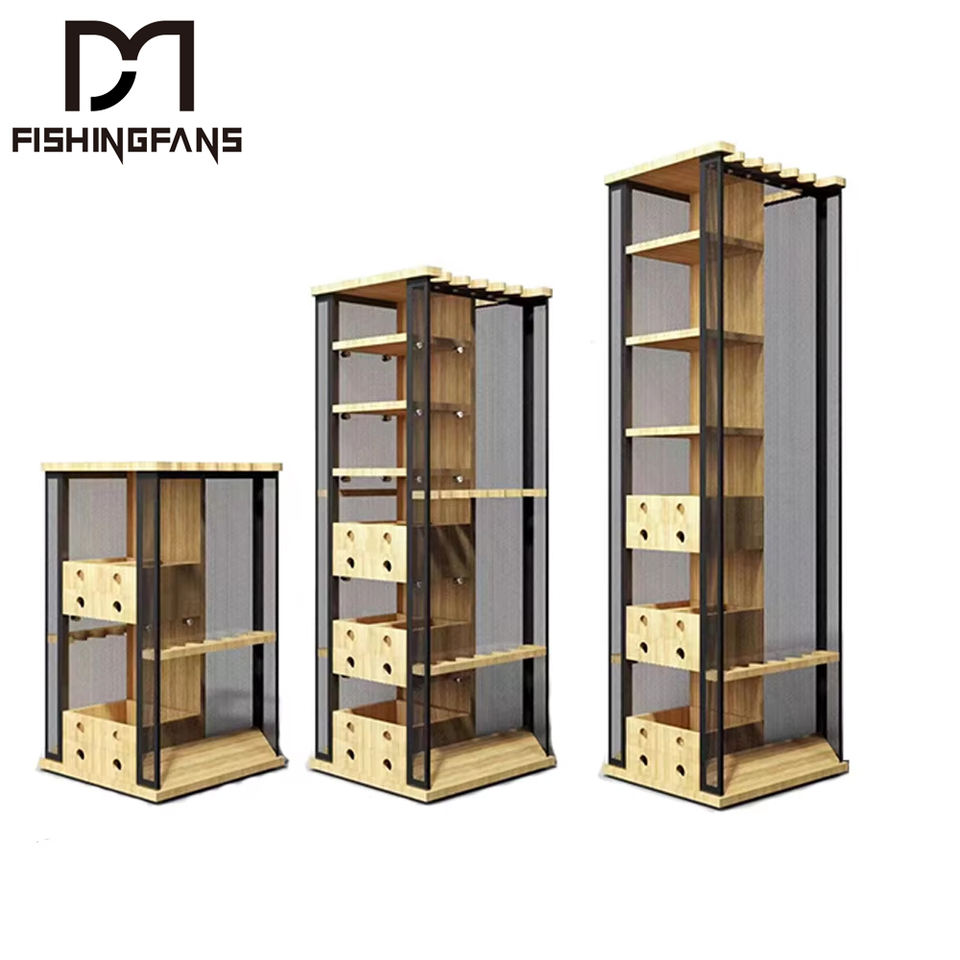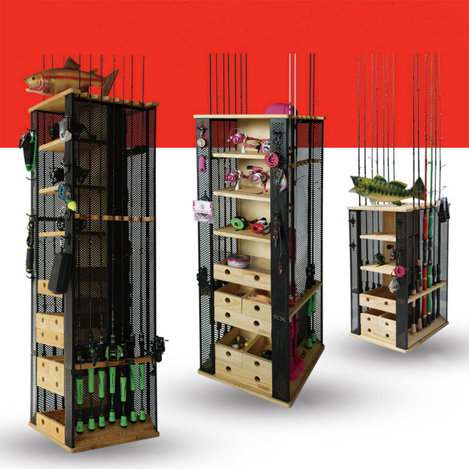 FISHINGFANS Support de rangement vertical multifonctionnel pour cannes à pêche, en bois et en métal, à base rotative, à fixer au mur, 78-152 cm