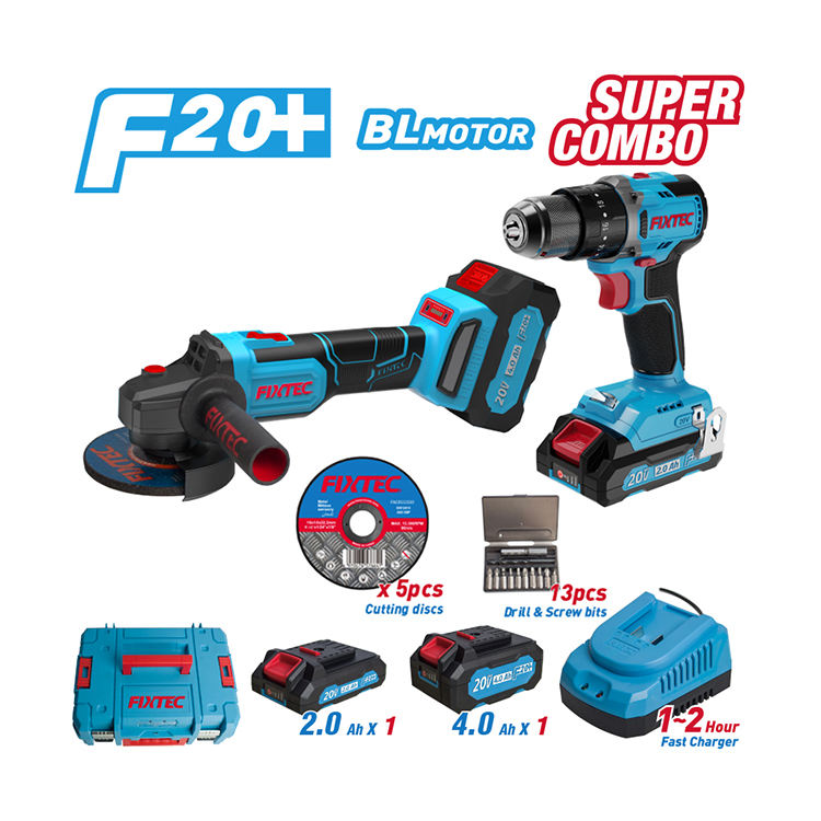 Kit d'outils électriques FIXTEC 20V, perceuse à percussion sans fil et meuleuse d'angle sans balais, portable, pour usage domestique