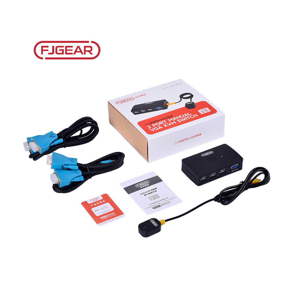 FJ-210UK fjgear 2 ports auto vga commutateur vidéo sur ip hd uhd 4k hdmi ethernet vga commutateur kvm