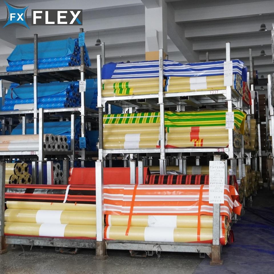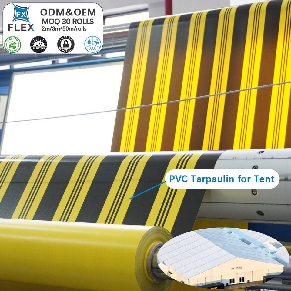 Bâche de terrasse FLFX ignifuge, antistatique, en tissu rayé enduit de PVC, imperméable et occultante, sur mesure
