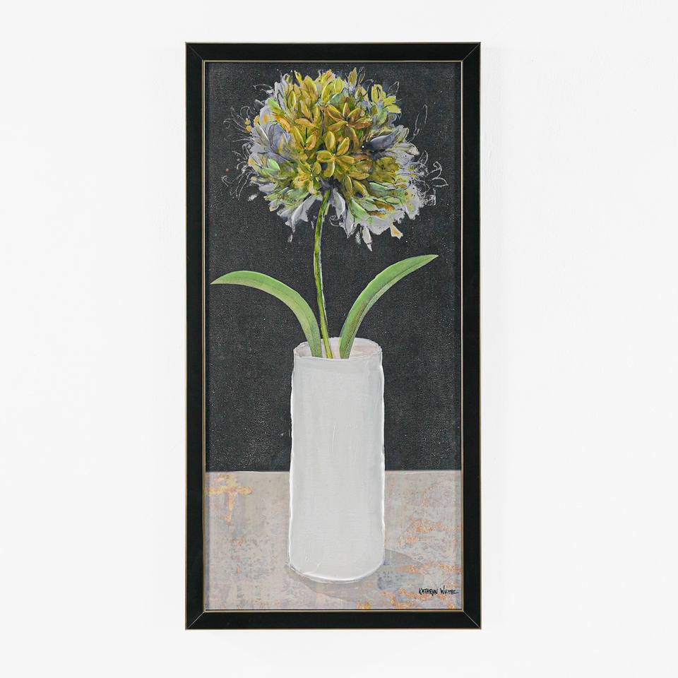 Peinture sur toile florale avec cadre en MDF noir 35x70cm épaisseur 4cm