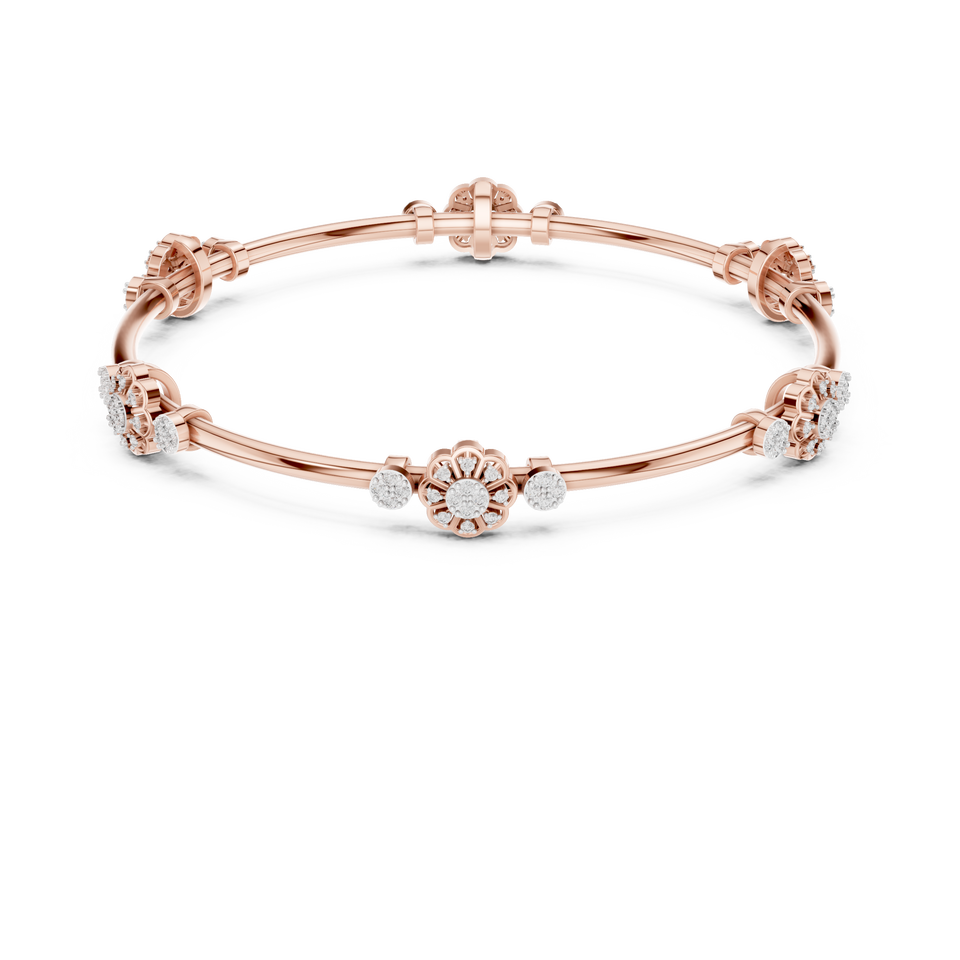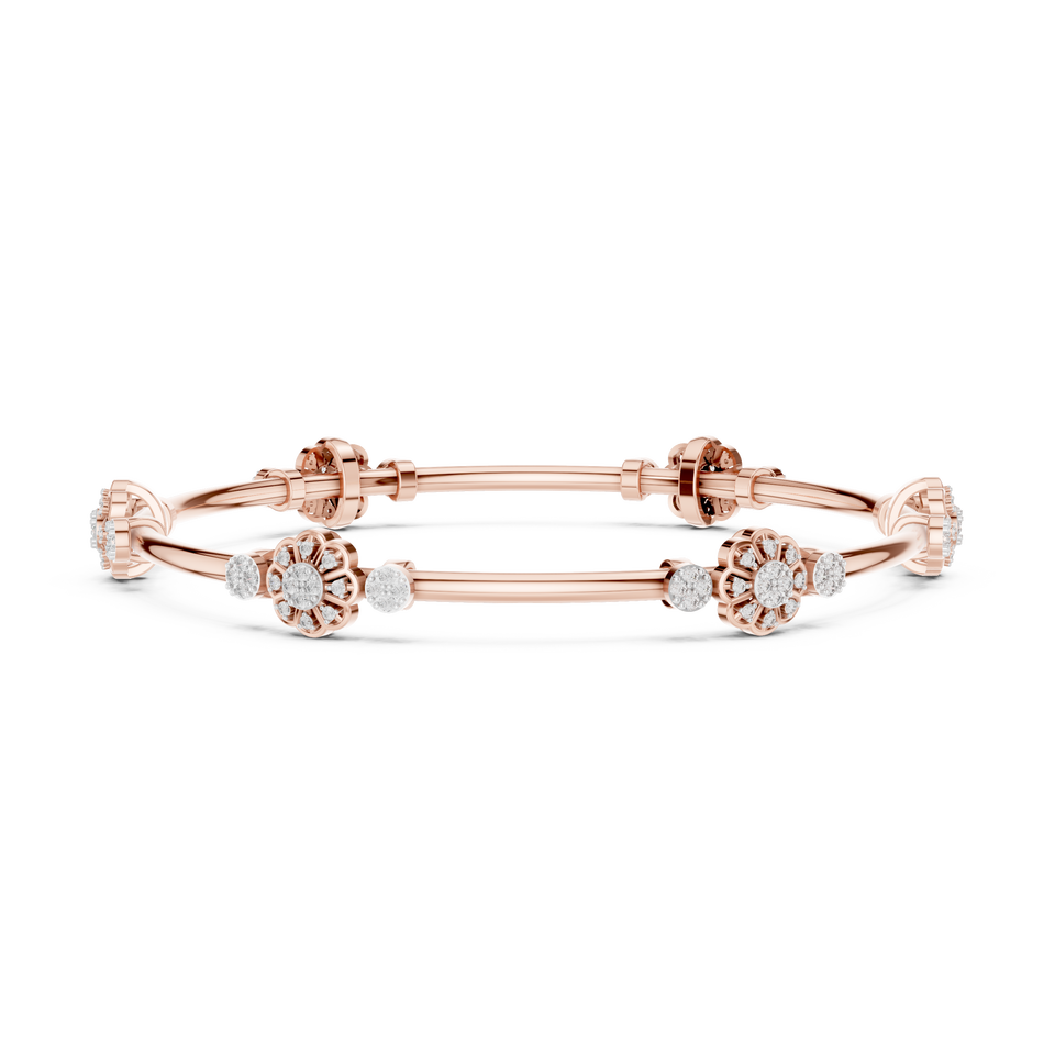 Ensemble de bracelets rigides en diamants de laboratoire floraux, plaqué or rose 18 carats, pour mariage, fiançailles, usage quotidien, femme