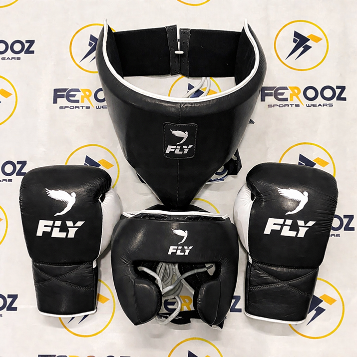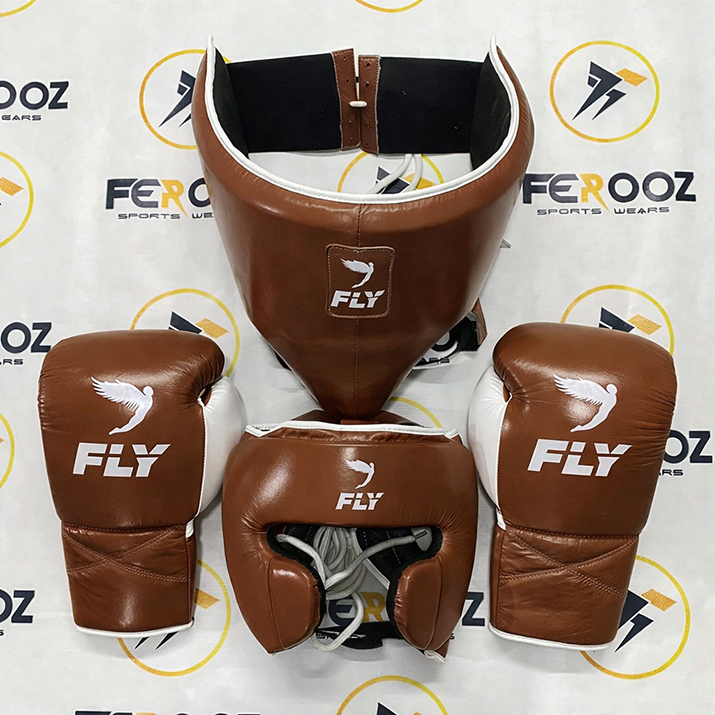 Ensemble de boxe personnalisé FLY rouge et blanc - Gants de boxe - Casque de protection - Protection inguinale - Kit d'entraînement avec logo personnalisé - Protection MMA
