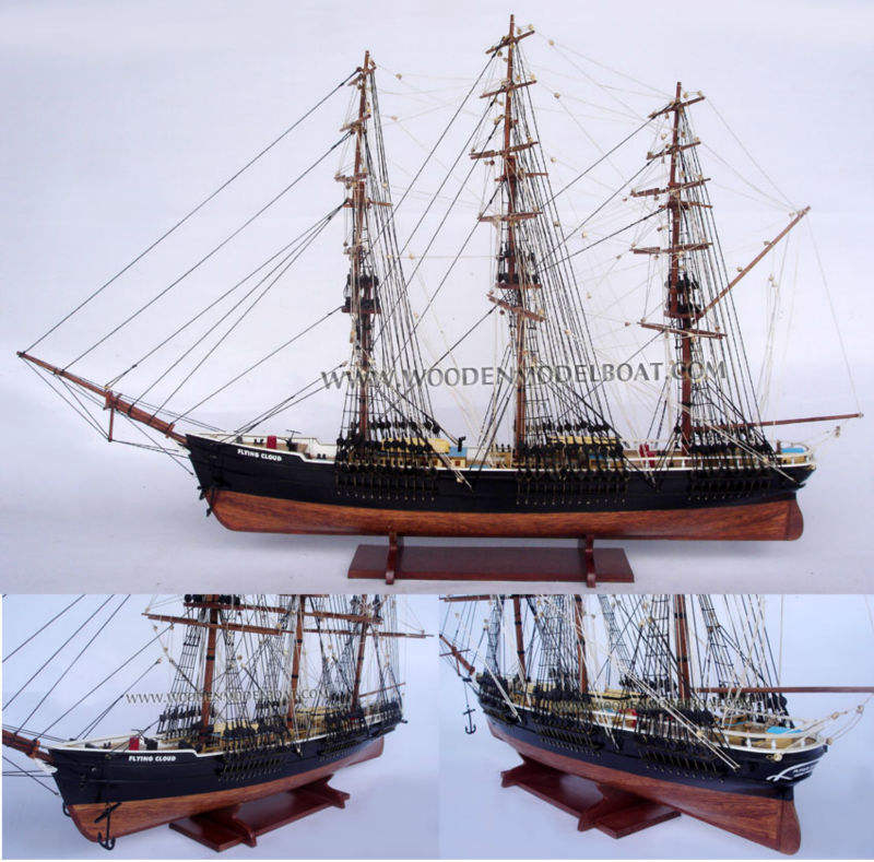 FLYINGG CLOUD Modèle de bateau en bois fait à la main Style nautique Nuage volant peint pour cadeaux d'affaires