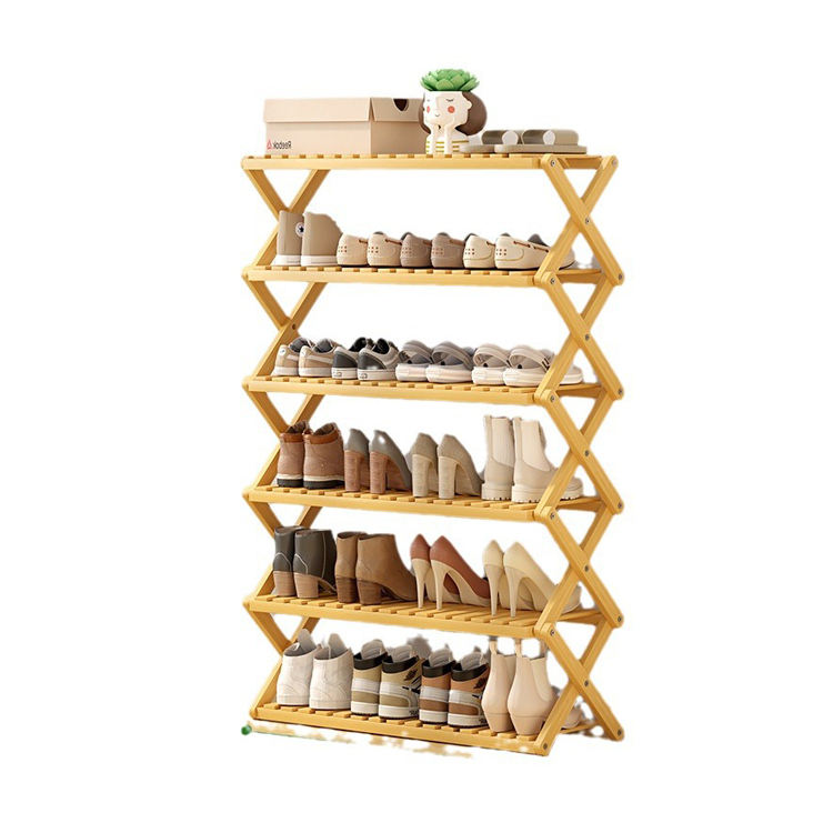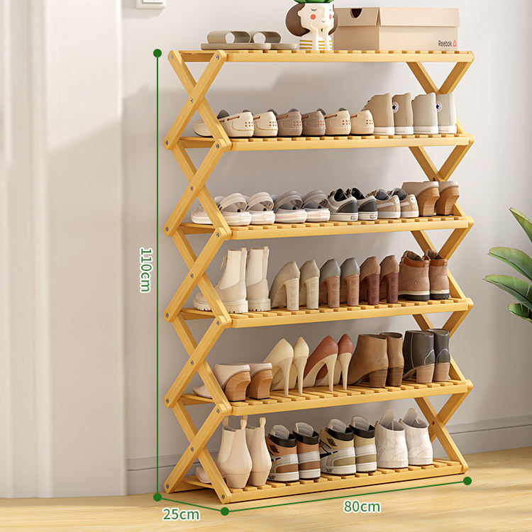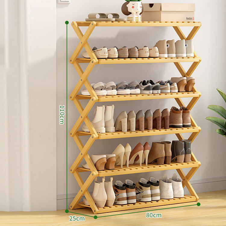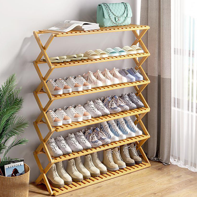 FNo assemblage pliable en bambou étagère à chaussures pliant plante présentoir 6 niveaux chaussures organisateur bambou étagère à chaussures