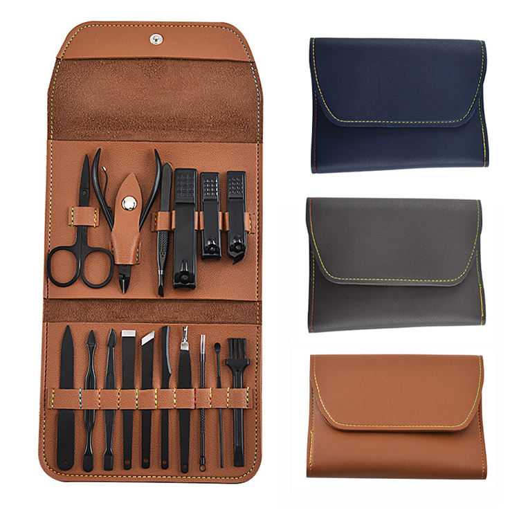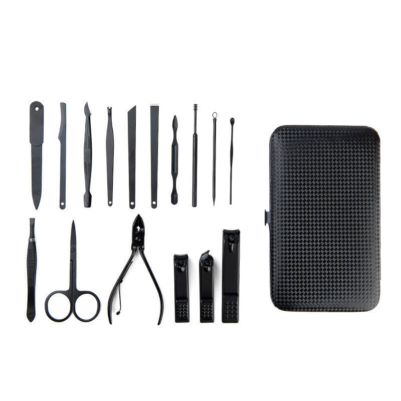 Ensemble de manucure et pédicure professionnel FOCSTAR 15/16 pièces en acier inoxydable noir, kit de coupe-ongles