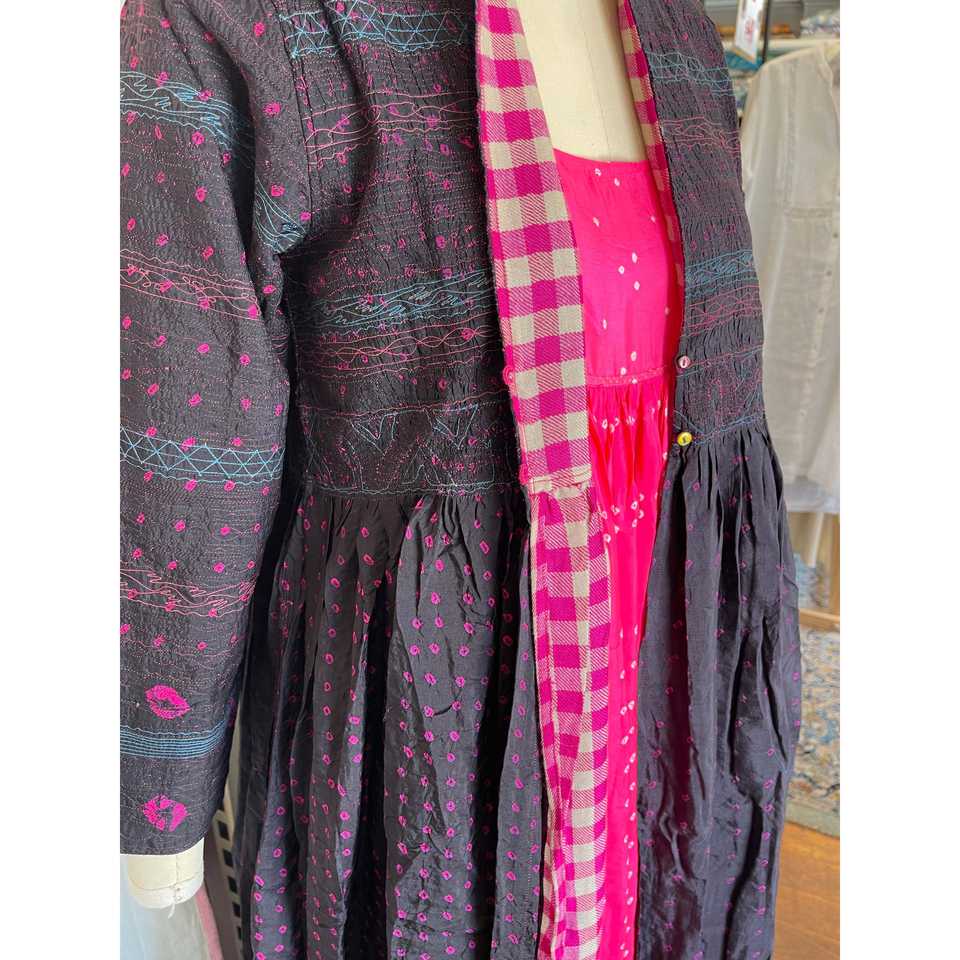 FOLKLORE 147 Plus Veste pour femme en laine et soie, motif Bandhani, coupe oversize XL, printemps-été, coton et polyester