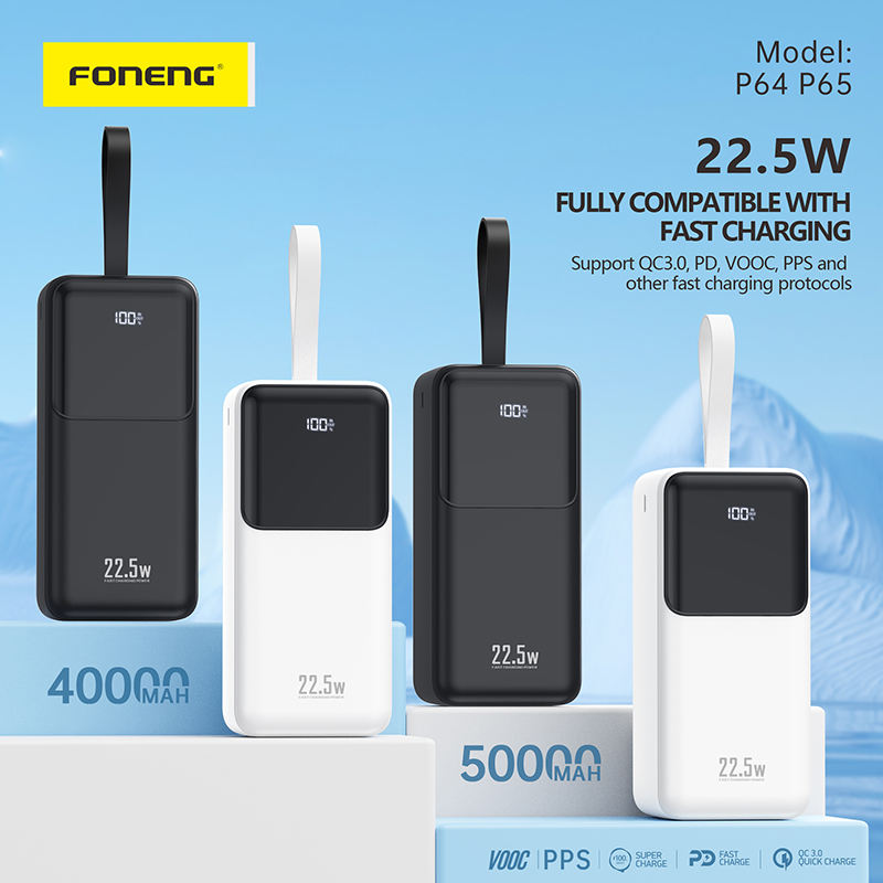 FONENG P65 Grande Capacité 10000mAh 20000mAh 30000mAh 40000mAh 50000mAh 22.5 mAh Power Bank W Chargeur de Batterie Externe pour Téléphones