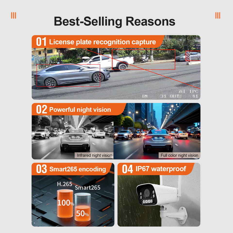 FOORIR Caméra de comptage de véhicules 4-6 mm Wi-Fi, IA embarquée, Windows/Linux, API, montage mur/plafond, multi-voies