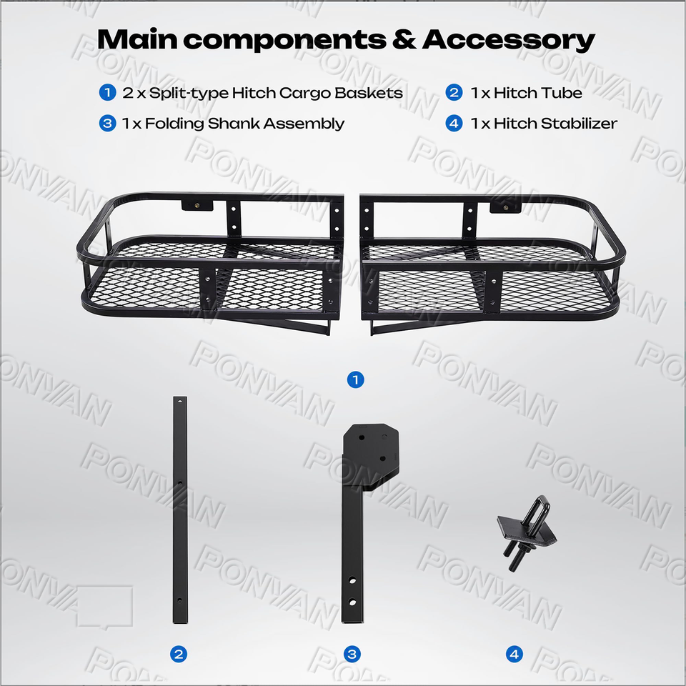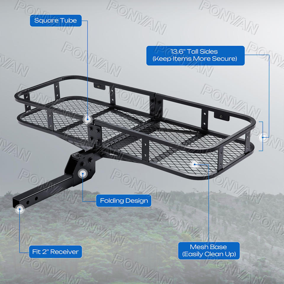 Pour le ramassage SUV 4X4 PONYAN nouveau Design fer pliant arrière noir attelage transporteur monté Cargo transporteur porte-bagages à vendre