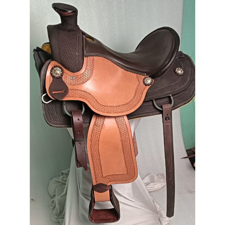 SELLE EN CUIR WESTERN, SELLE EN CUIR DE CHEVAL, SELLE DE CHEVAL SANS ARBRE