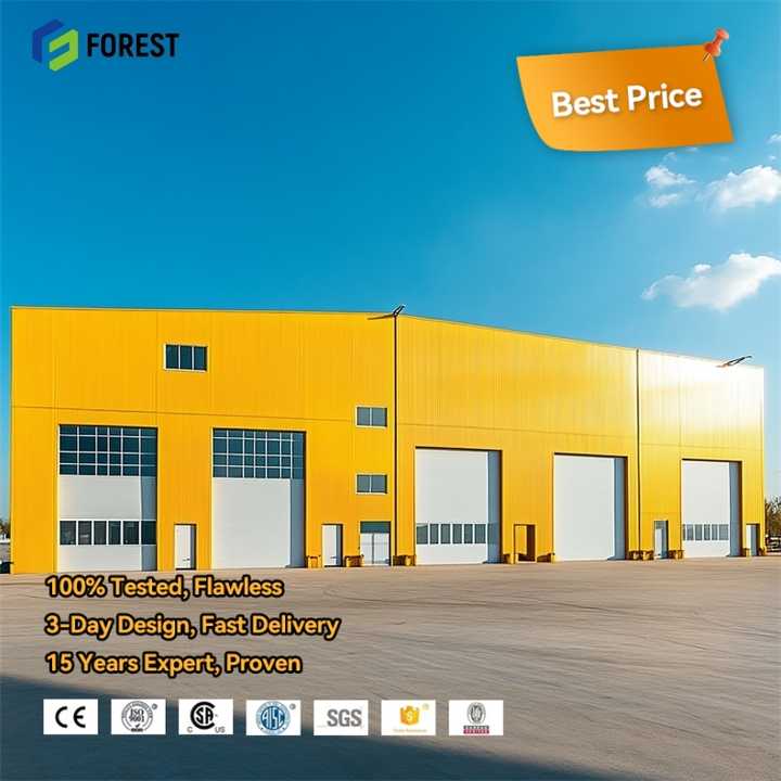 Atelier de réparation automobile préfabriqué en acier lourd certifié CE de la marque FOREST, services de soudage, de pliage et de découpe, structure à ossature longue portée