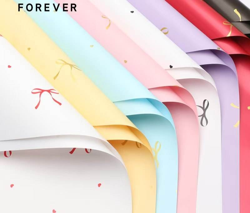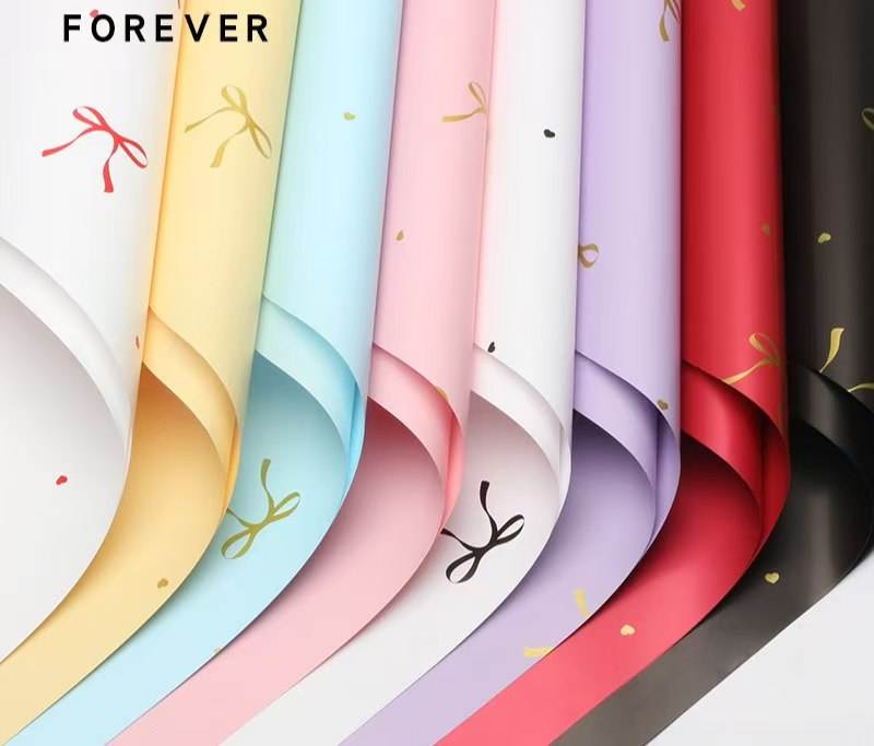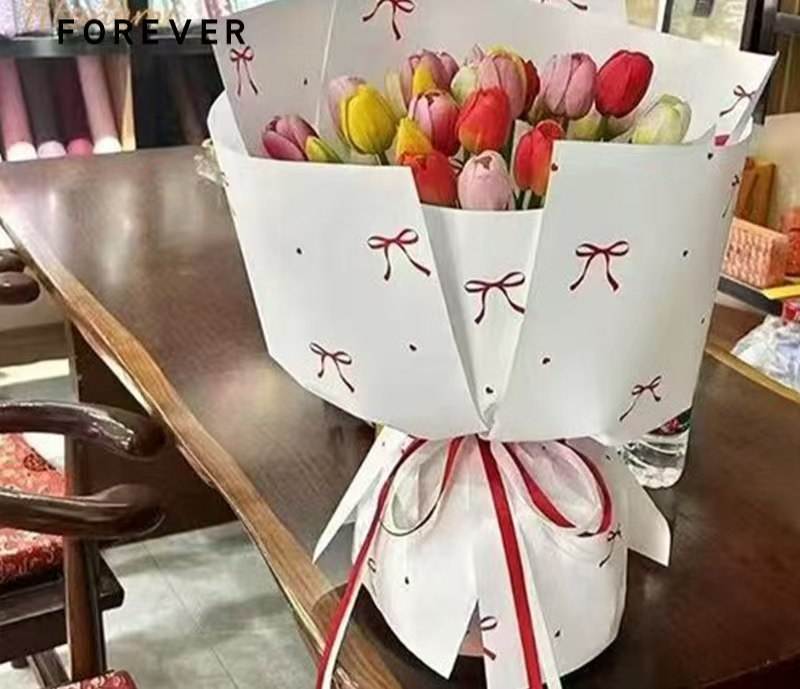 Papier d'emballage floral en PVC enduit réutilisable FOREVER - Imprimé nœud papillon pour emballage de cadeaux DIY et bouquets de fleuristes (57*57cm)