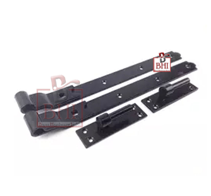 Charnières de portail en fer forgé robuste, noires, 495 mm, style traditionnel à crochet et à bande, pour boîtes, meubles de salle à manger et de salle de bain