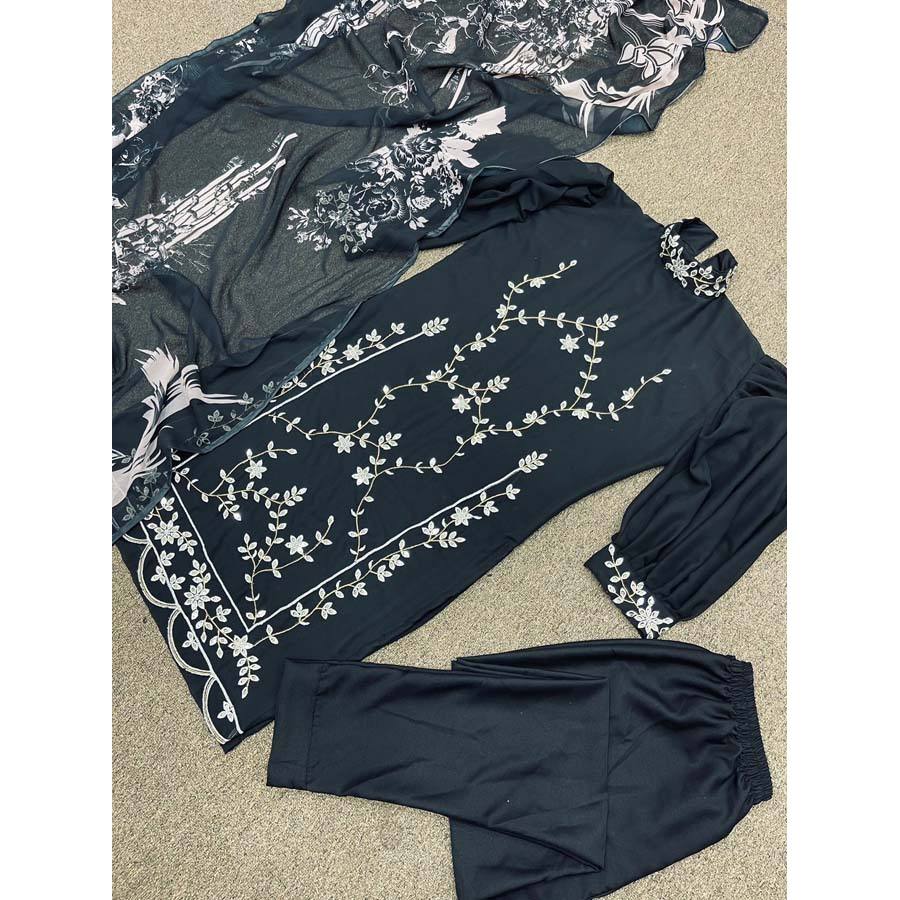 FORMAL WEAR BRODERIE SÉQUENCE TRAVAIL HAUT BAS AVEC DUPATTA NOIR