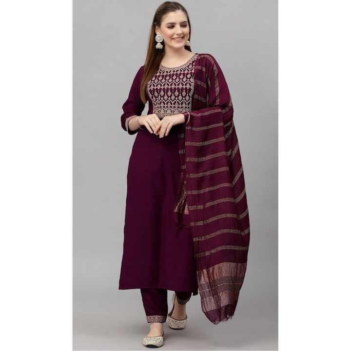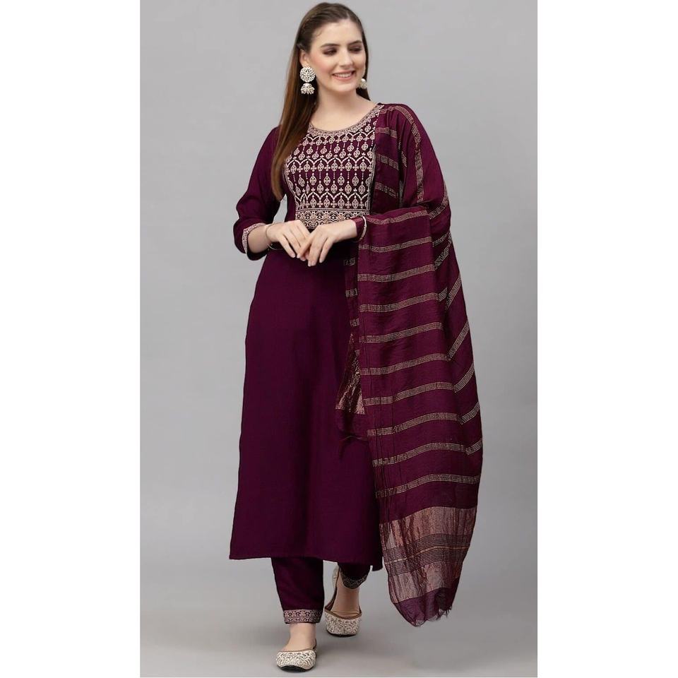 Vêtements de cérémonie RAYON BRODERIE HAUT BAS AVEC DUPATTA WINE