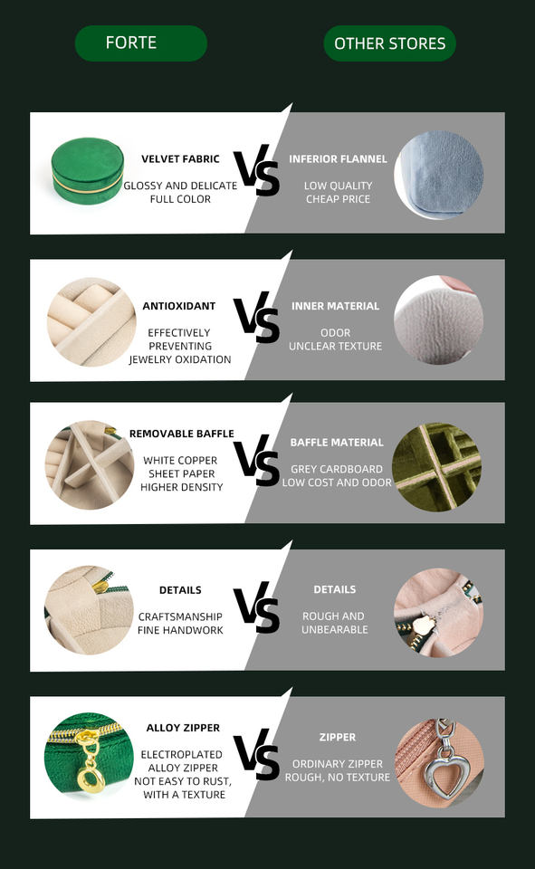 FORTE PACKAGING Petite boîte à bijoux de voyage Boîte de rangement en velours portable pour organiser et ranger les bijoux