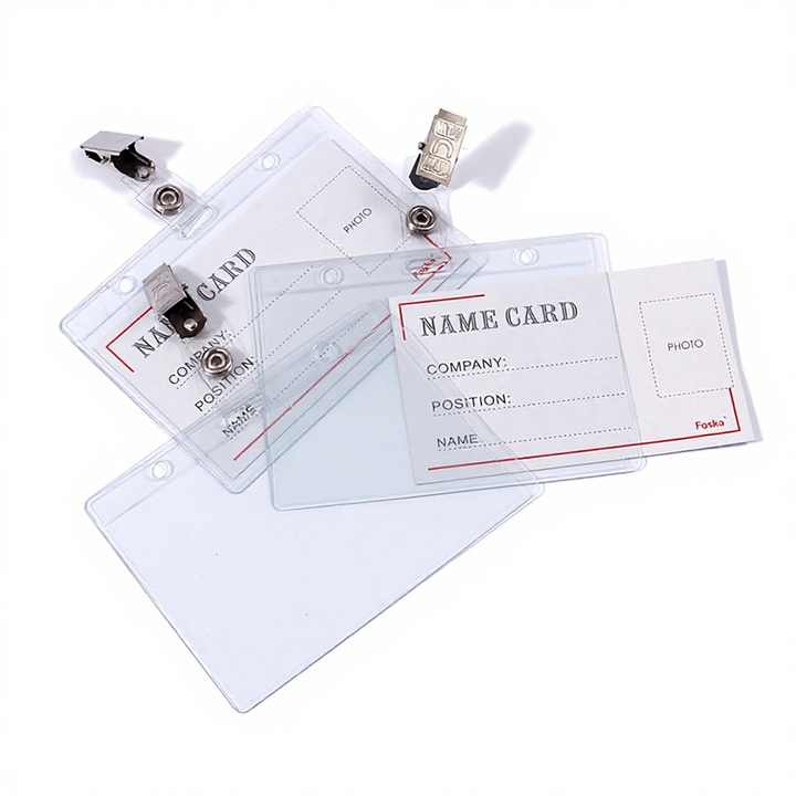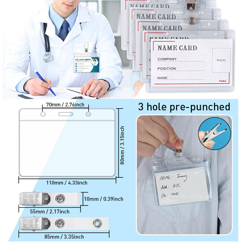 FOSKA 100 Porte-cartes d'identité transparents horizontaux flexibles en plastique pour étudiants avec attaches à clip pour protéger les cartes d'identité