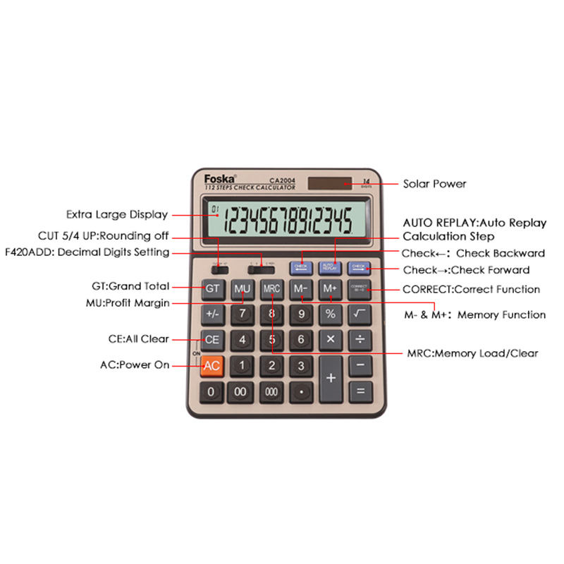 Calculatrice financière FOSKA à 14 chiffres avec écran LCD facile à lire, en ABS de haute qualité, pour les commerces, avec design antidérapant