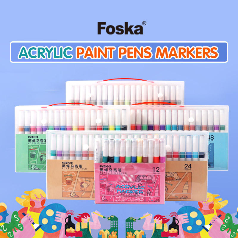Ensemble de marqueurs acryliques FOSKA à pointe fine et lisse, plusieurs couleurs, séchage rapide, non toxiques, pour scrapbooking, pour enfants et adultes