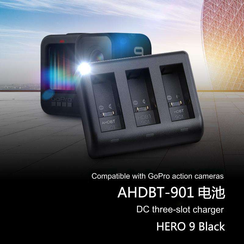 FOSOTO FB DC-AHDBT-901 Haute Qualité Type-C Portable USB DC chargeur à trois emplacements avec caméra d'action GoPro pour Batterie GoPro 901