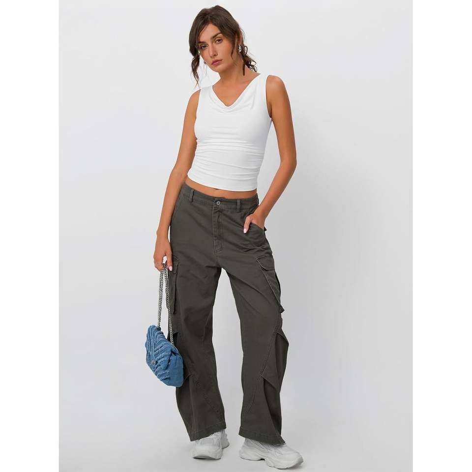 FOXA 2025 Summer Fashion Queen Womens Cute Sleeveless Tank Tops Breathable Cowl Neck V Basic Outfits Clothes for Going Out
