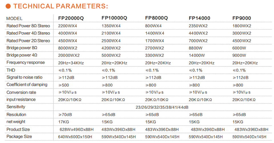 8Ω Stéréo : 1800W*2 ; 4Ω Stéréo : 3000W*2Puissance de sortie