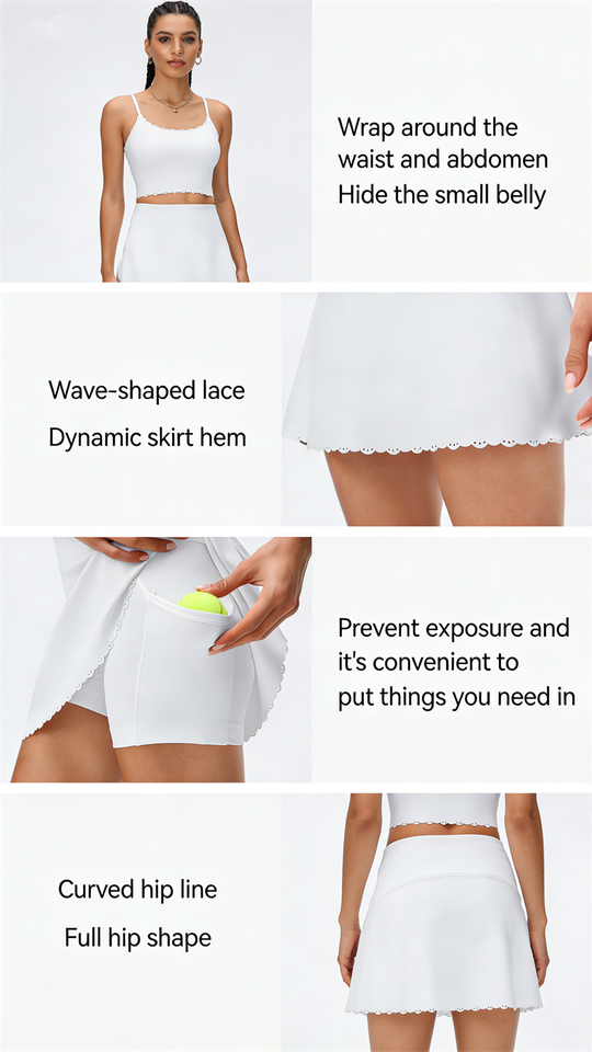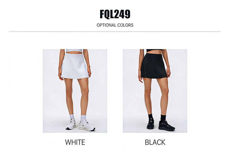 Jupe athlétique taille haute FQL249 à séchage rapide avec ourlet festonné, ceinture extensible et short intégré pour le tennis et le pickleball