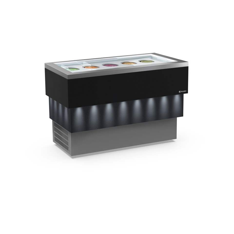 Réfrigérateur FRAMEC Pleine vue Scoop glace et barboteuses pozzetto avec cuves cylindriques Réfrigérateur noir 10 + 10 1510x724x1030 m