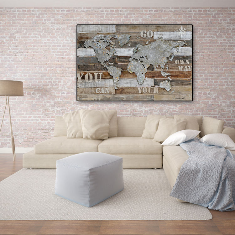 Nuage gratuit 2023 best-seller abstrait mur Art carte du monde personnalisé estampage à chaud peinture à l'huile pour salon décor à la maison