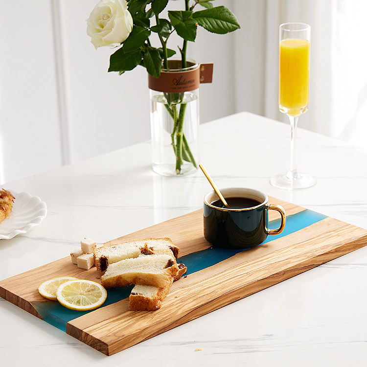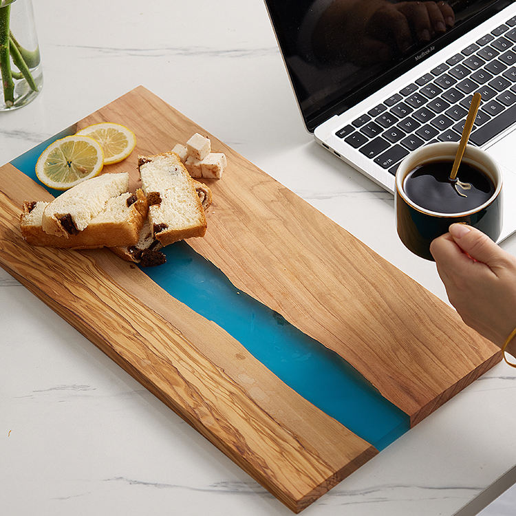 ÉCHANTILLON GRATUIT Grande planche à découper multifonctionnelle en résine époxy et bois d'olivier pour charcuterie et fromage
