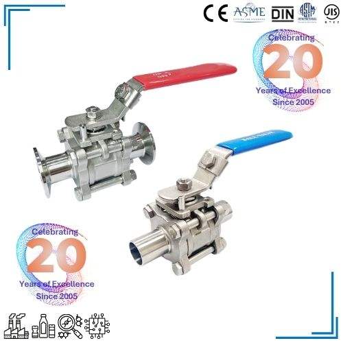 FREE SAMPLE Size 1/2" 1000PSI 3-PC Sanitary Ball Valve SS316/SS332L PTFE Sealing Tri-clamp Tube End Ports Gas/Water/Oil