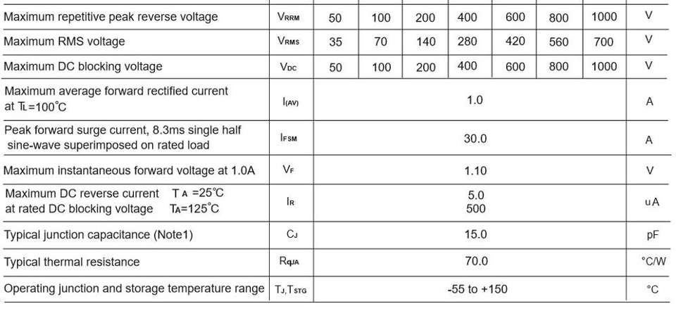 1N4007 (M7/M7F)Numéro de Type