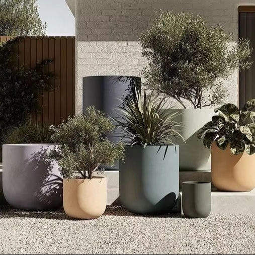 Pot de fleurs classique en fibre de verre FRP, écologique, grand format, léger, texture mate, trous de drainage pour jardin, balcon, salon