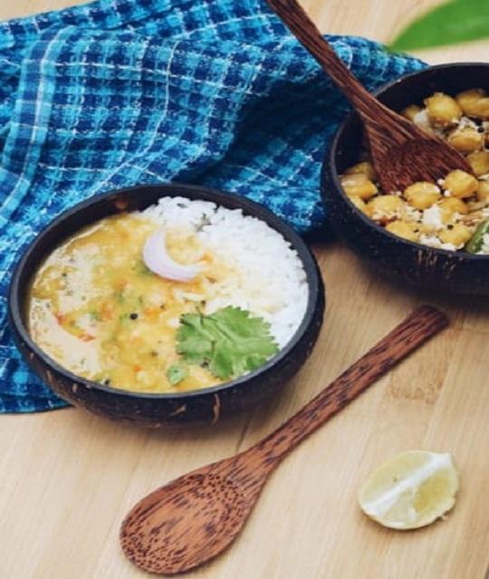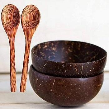 Bol en coquille de noix de coco poli FS INTERNATIONAL, design tropical côtier, vaisselle fabriquée à partir de coquille naturelle