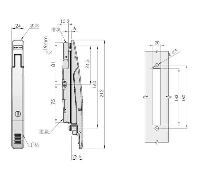 Serrures de cabinet à 3 points FS2140 MS855-5 utilisées sur les armoires à double porte hautes, serrures à commande par tige comme serrures de tiroir BAOTAI CN;ZHE en alliage de zinc