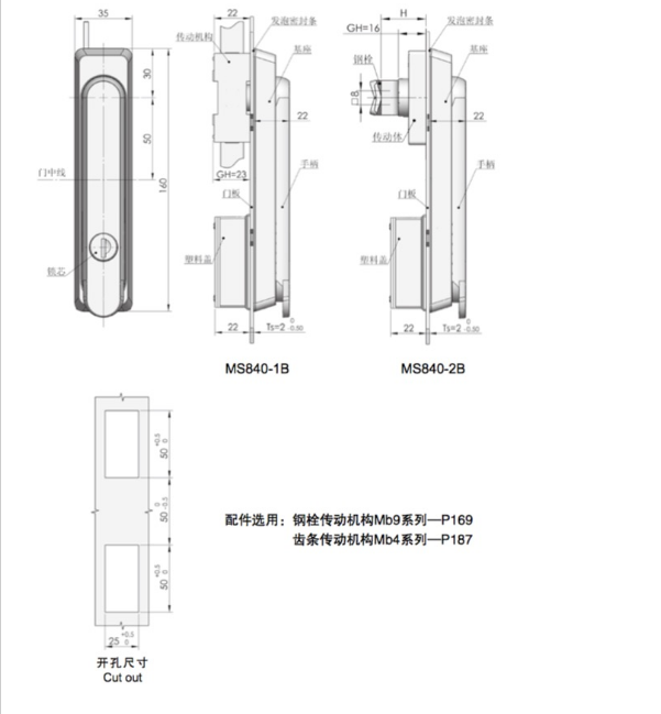 Serrure électrique à barre combinée à 3 points FS2232 MS840-B, serrure de panneau électrique, système de serrure à 3 points