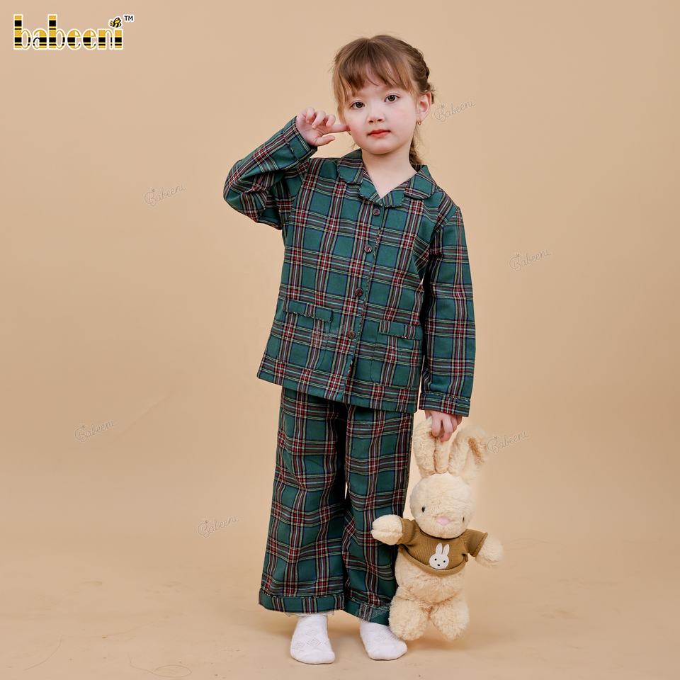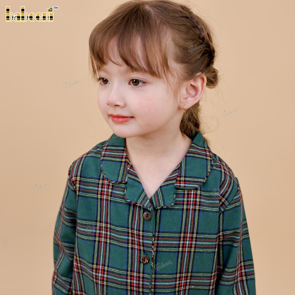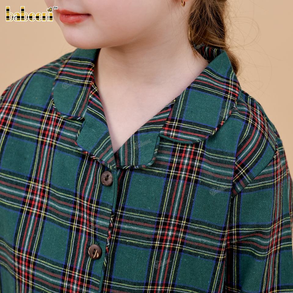 Robe de pyjama pour filles FS24 - 100% coton, imprimé écologique, motif mini tartan, ignifuge