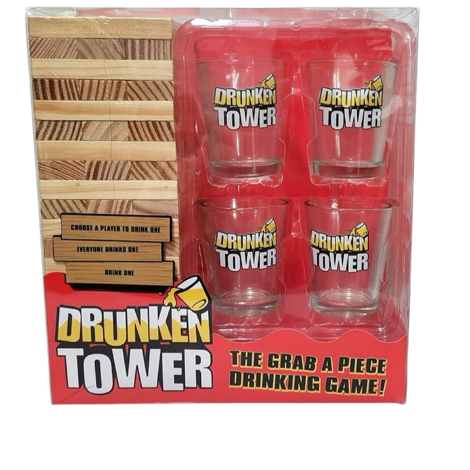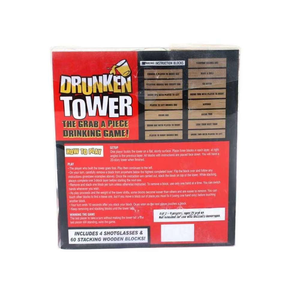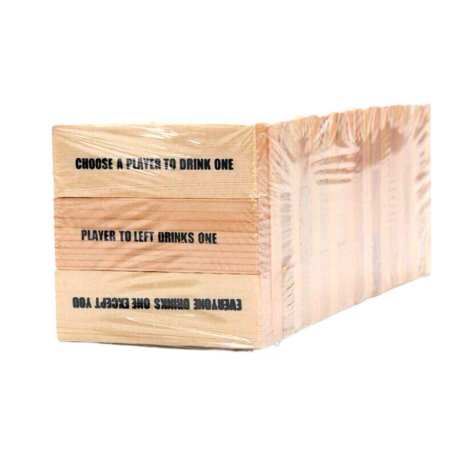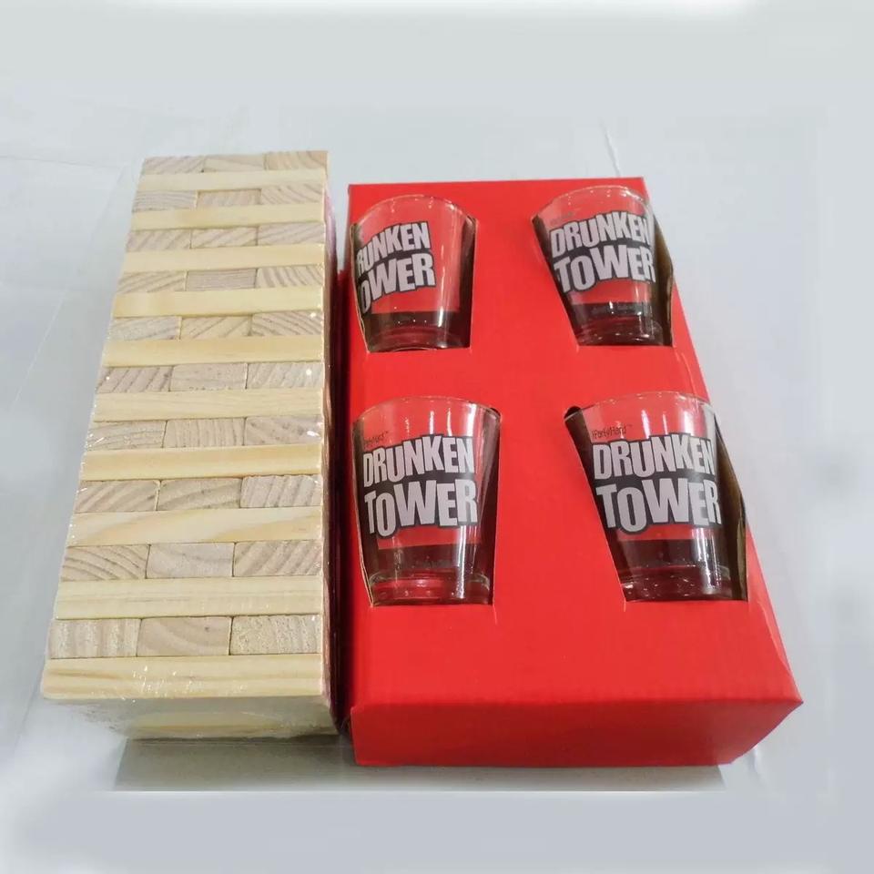Ensemble de 60 blocs de bois empilables et 4 verres à liqueur pour bar et jeu de nuit amusant fait de dominos Tour ivre FSC Factory