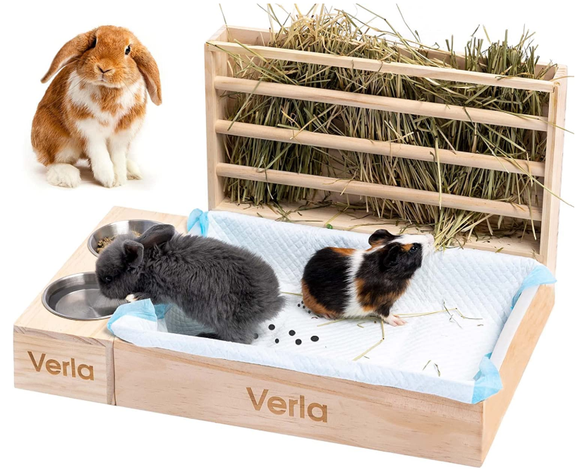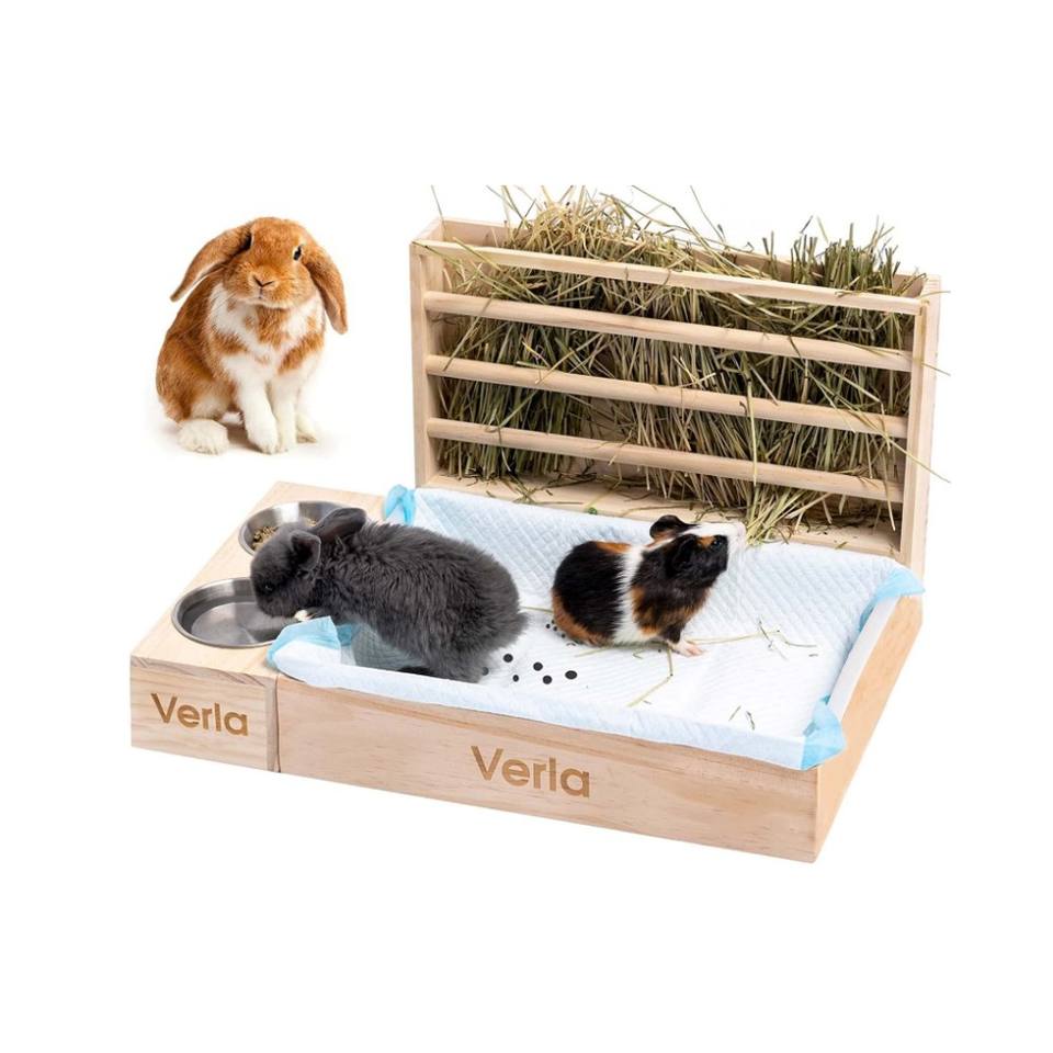 FSC râtelier à foin lapin Hamster mangeoire en bois toilette Combo mangeoire bac à litière bols lapin mangeoire à foin