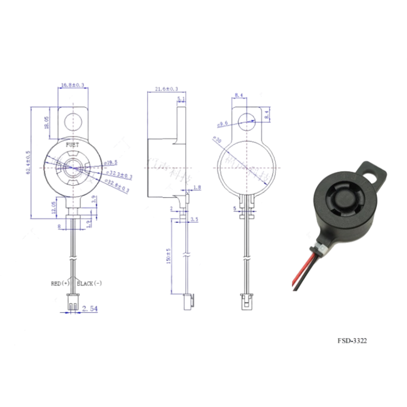 FSD-3322 12V 33 * H22MM DC Étanche Haut Décibel 90dB 3000Hz Piezo Active Son Continu Buzzer Avec Fils Pour Unité De Pilotage