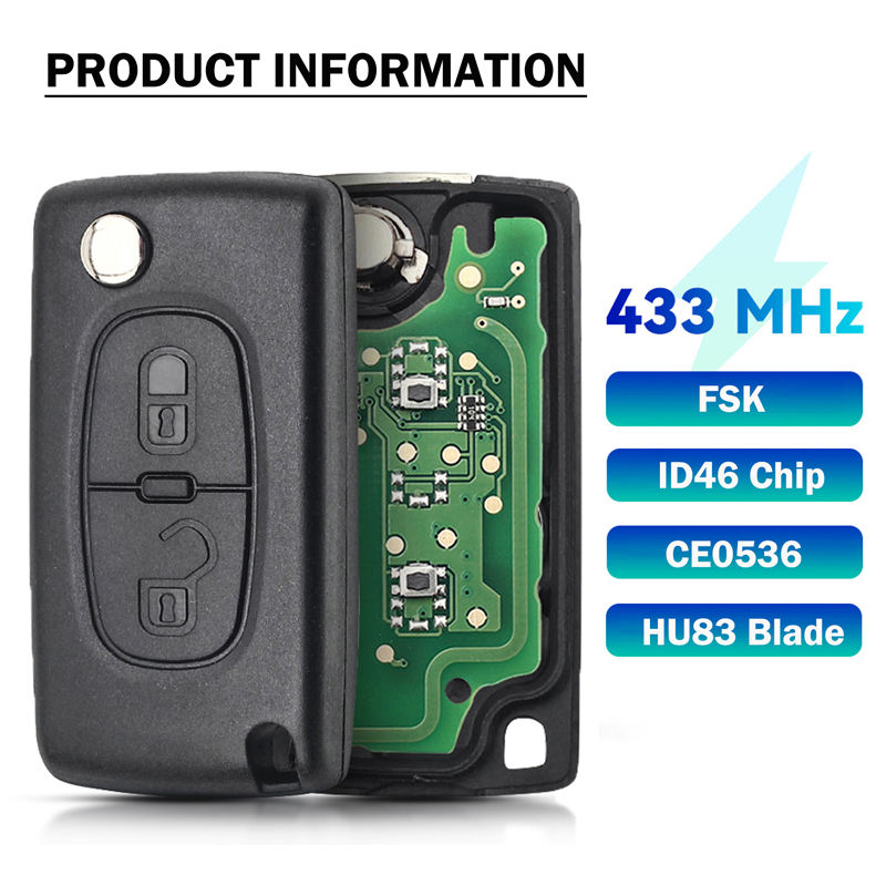 Clé télécommande FSK 433 MHz ID46 (PCF7961) programmable électroniquement, 2 boutons, lame CE0536 HU83, clé de voiture à distance pour Peugeot