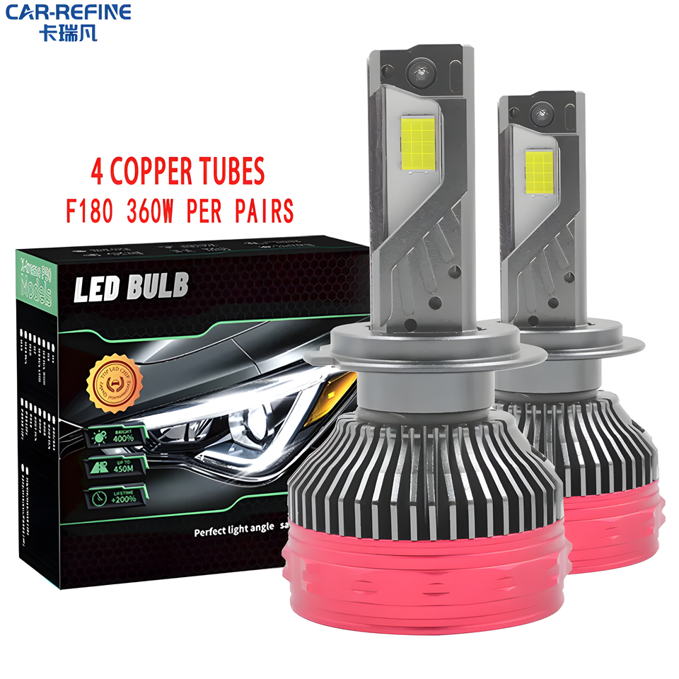 FSYLX 360W Haute Puissance F180 H7 Led Phare Ampoule Quatre Tupes En Cuivre Super Lumineux 12V H7 Led Lumière H1 H3 H11 H7 H4 Led Phare
